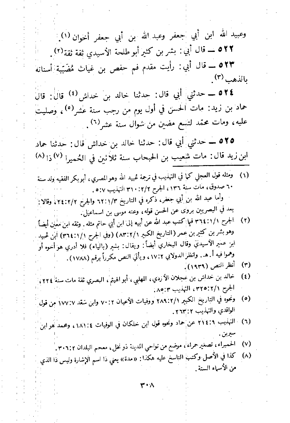 525 - حَدثنِي أبي قَالَ حَدثنَا خَالِد بن خِدَاش قَالَ حَدثنَا حَمَّاد بن زيد قَالَ مَاتَ شُعَيْب بن الحبحاب سنة ثَلَاثِينَ فِي الحميرا ذَا شبه البثر وَمَات أَيُّوب سنة إِحْدَى وَثَلَاثِينَ وَمِائَة فِي رَمَضَان