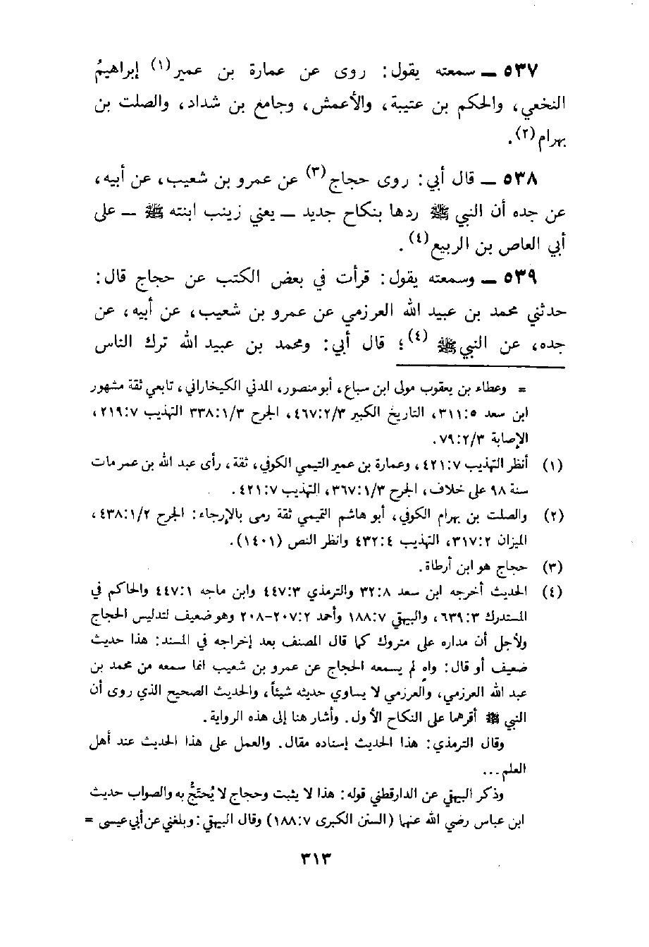 538 - قَالَ أَبِي رَوَى حَجَّاجٌ عَنْ عَمْرِو بْنِ شُعَيْبٍ عَنْ أَبِيهِ عَنْ جَدِّهِ أَنَّ النَّبِيَّ صَلَّى اللَّهُ عَلَيْهِ وَسَلَّمَ رَدَّهَا بِنِكَاحٍ جَدِيدٍ يَعْنِي زَيْنَبَ ابْنَتَهُ صَلَّى اللَّهُ عَلَيْهِ وَسَلَّمَ عَلَى أَبِي الْعَاصِ بْنِ الرَّبِيعِ