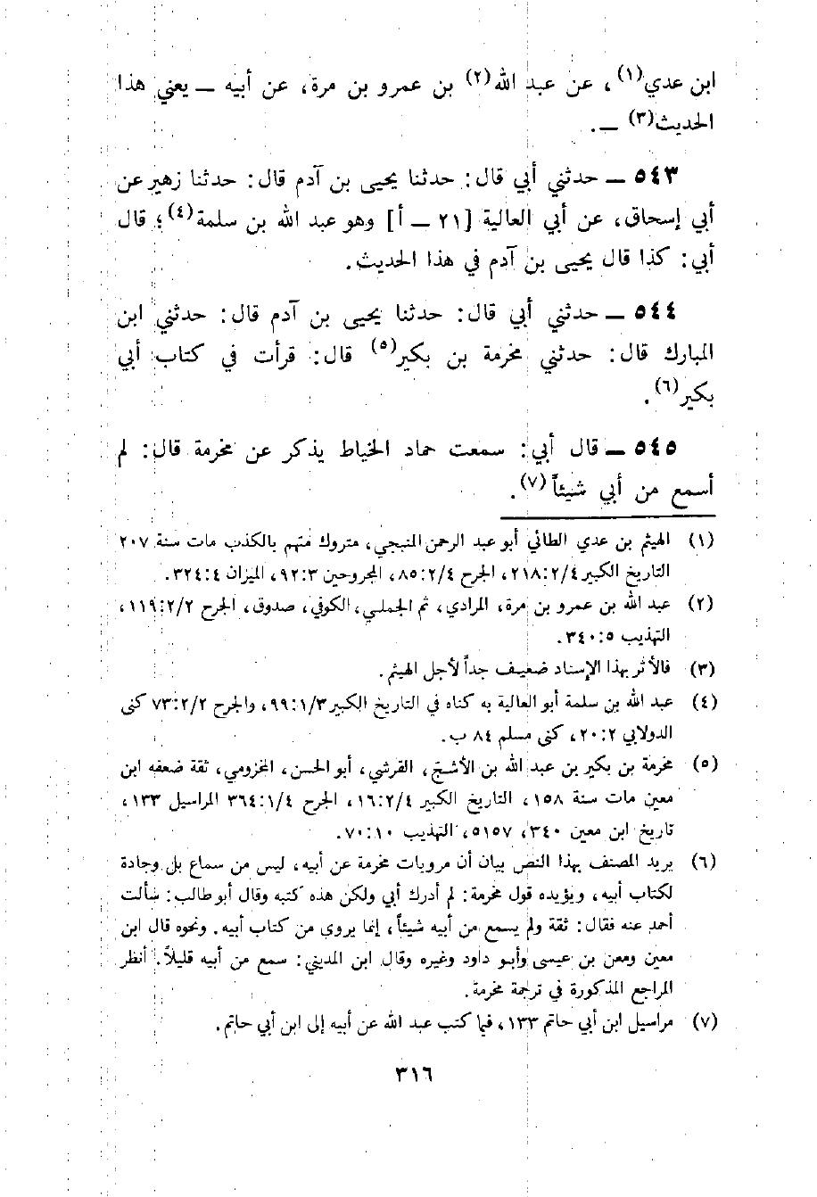 544 - حَدثنِي أبي قَالَ حَدثنَا يحيى بن آدم قَالَ حَدثنِي بن الْمُبَارك قَالَ حَدثنِي مخرمَة بن بكير قَالَ قَرَأت فِي كتاب أبي بكير