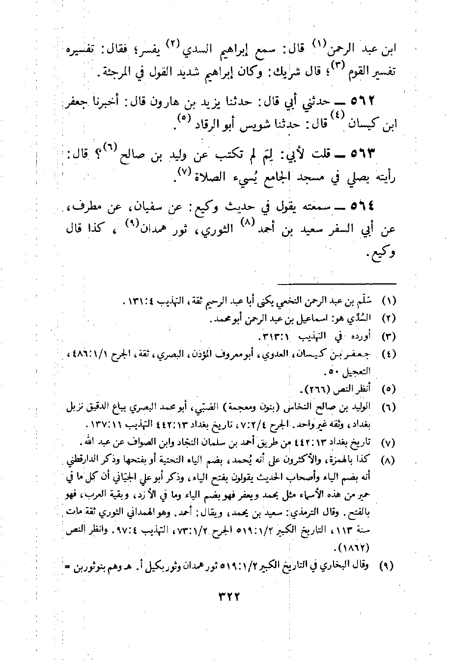 564 - سمعته يَقُول فِي حَدِيث وَكِيع عَن سُفْيَان عَن مطرف عَن أبي السّفر سعيد بن أَحْمد الثَّوْريّ ثَوْر هَمدَان كَذَا قَالَ وَكِيع
