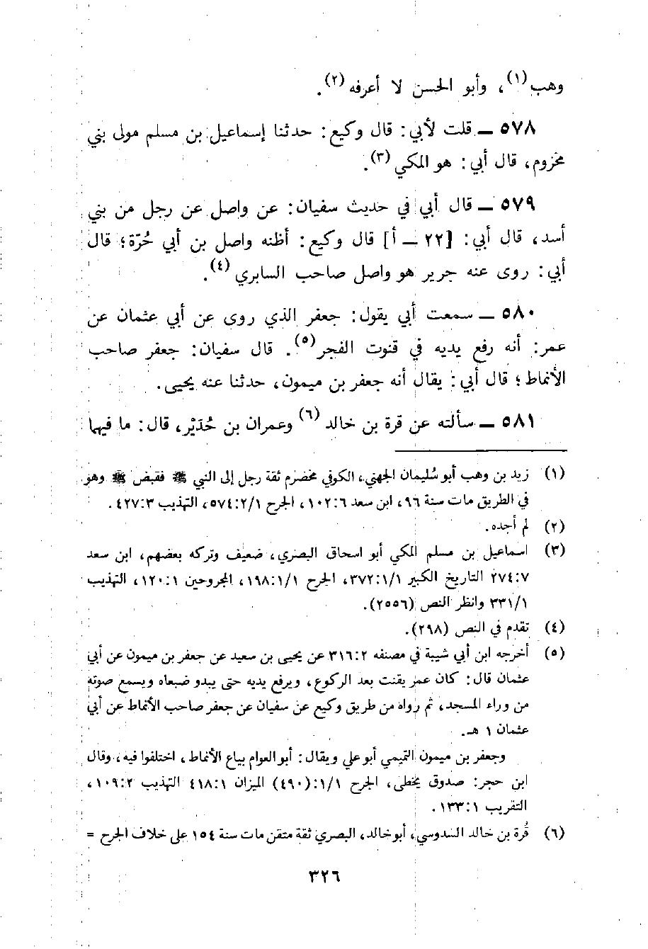 580 - سَمِعْتُ أَبِي يَقُولُ جَعْفَرٌ الَّذِي رَوَى عَنْ أَبِي عُثْمَانَ عَنْ عُمَرَ أَنَّهُ رَفَعَ يَدَيْهِ فِي قُنُوتِ الْفَجْرِ قَالَ سُفْيَانُ جَعْفَرٌ صَاحِبُ الأَنْمَاطِ قَالَ أَبِي يُقَالُ إِنَّهُ جَعْفَرُ بْنُ مَيْمُونٍ حَدَّثَنَا عَنْهُ يَحْيَى