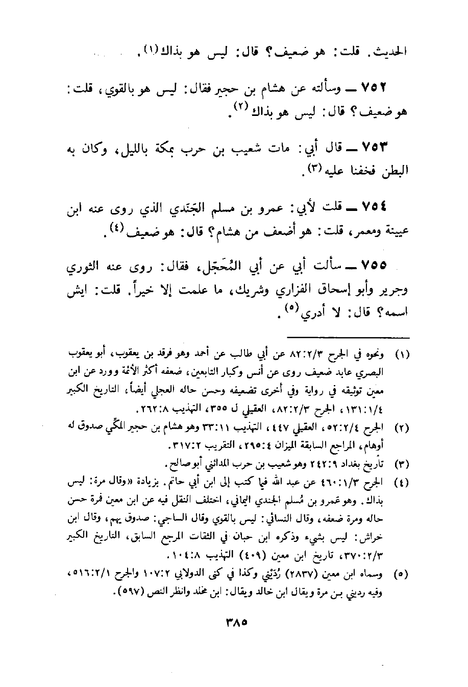 754 - قلت لأبي عَمْرو بن مُسلم الجندي الَّذِي روى عَنهُ بن عُيَيْنَة وَمعمر قلت هُوَ أَضْعَف من هِشَام قَالَ هُوَ ضَعِيف