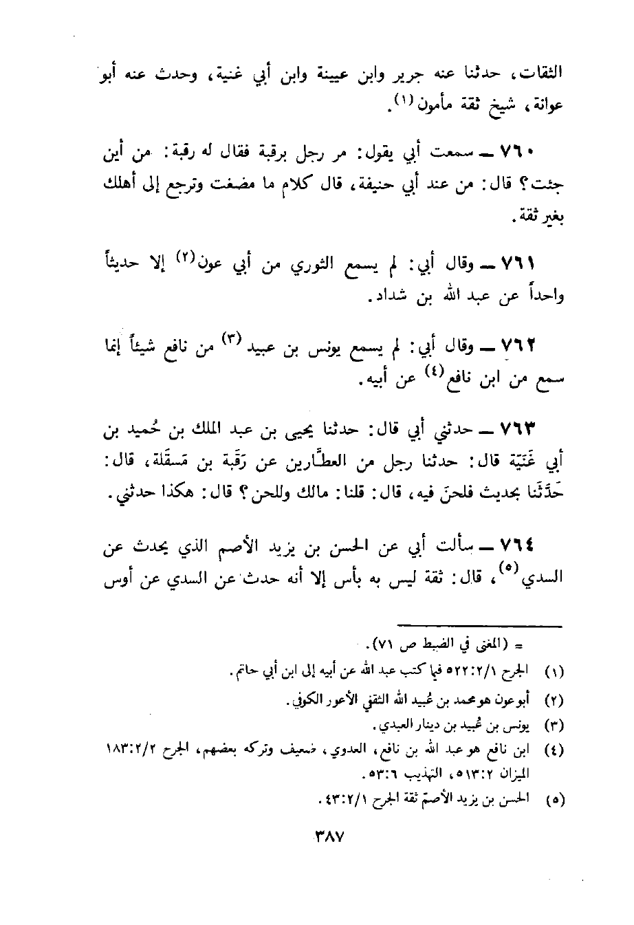 760 - سَمِعت أبي يَقُول مر رجل بِرَقَبَة فَقَالَ لَهُ رَقَبَة من أَيْن جِئْت قَالَ من عِنْد أبي حنيفَة قَالَ كَلَام مَا مضغت وَترجع إِلَى أهلك بِغَيْر ثِقَة