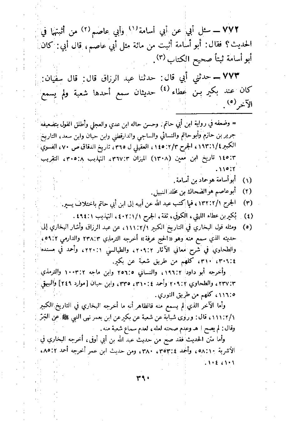 772 - سُئِلَ أبي عَن أبي أُسَامَة وَأبي عَاصِم من أثبتهما فِي الحَدِيث فَقَالَ أَبُو أُسَامَة أثبت من مائَة مثل أبي عَاصِم قَالَ أبي كَانَ أَبُو أُسَامَة ثبتا صَحِيح الْكتاب