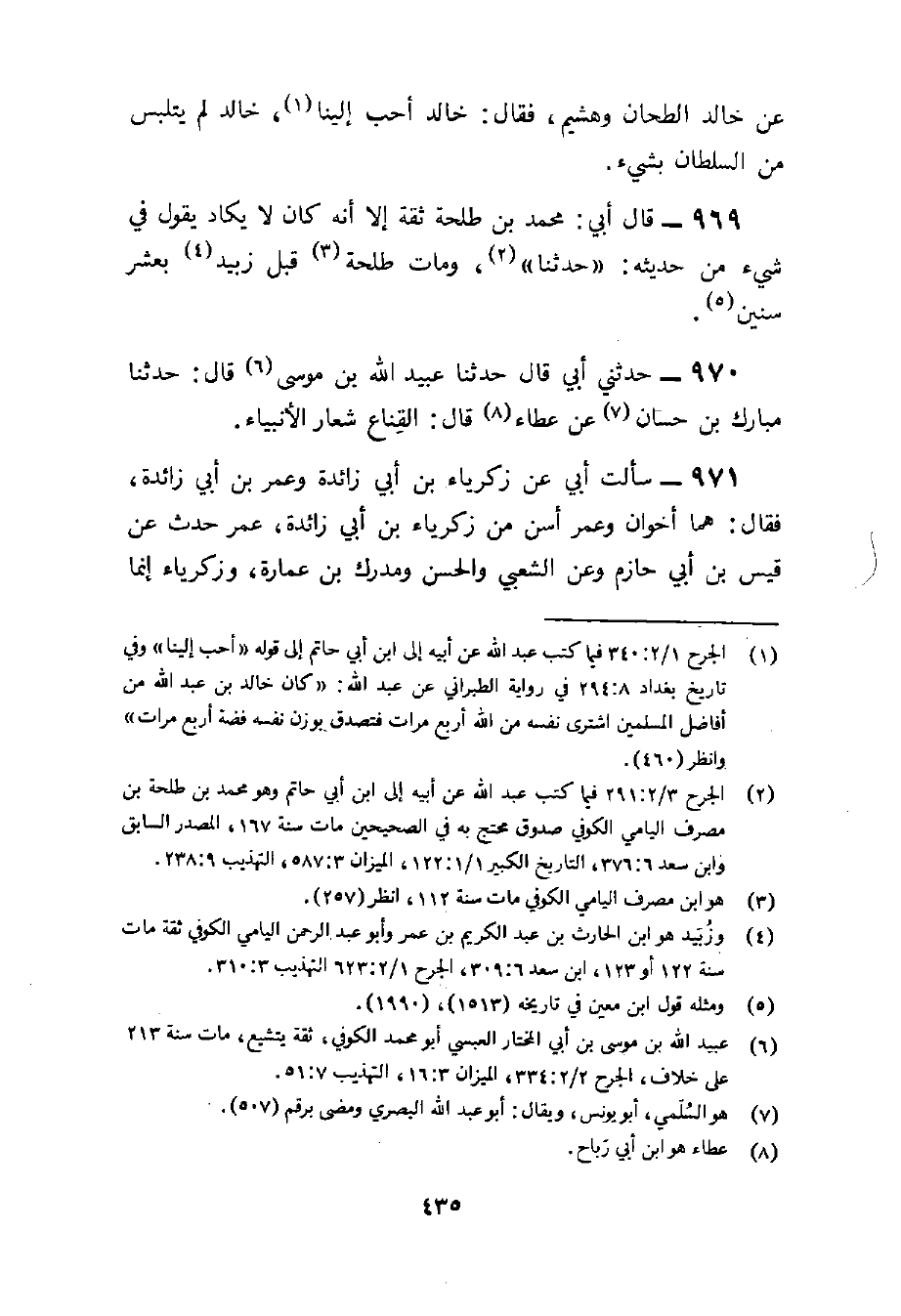 969 - قَالَ أبي مُحَمَّد بن طَلْحَة ثِقَة إِلَّا أَنه كَانَ لَا يكَاد يَقُول فِي شَيْء من حَدِيثه حَدثنَا وَمَات طَلْحَة قبل زبيد بِعشر سِنِين