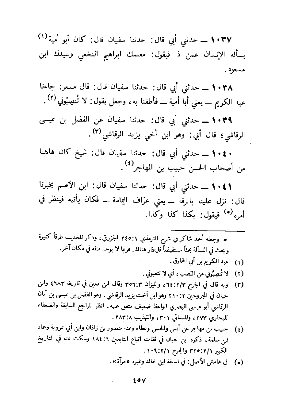 1040 - حَدثنِي أبي قَالَ حَدثنَا سُفْيَان قَالَ شيخ كَانَ هَا هُنَا من أَصْحَاب الْحسن حبيب بن المُهَاجر