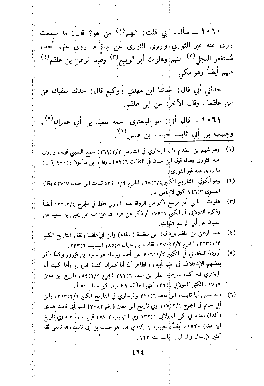 1060 - سَأَلت أبي قلت شهم من هُوَ قَالَ مَا سَمِعت روى عَنهُ غير الثَّوْريّ وروى الثَّوْريّ عَن عدَّة مَا روى عَنْهُم أحد مُسْتَغْفِر البَجلِيّ مِنْهُم وهلواث أَبُو الرّبيع وَعبد الرَّحْمَن بن علقم مِنْهُم أَيْضا وَهُوَ مكي حَدثنِي أبي قَالَ حَدثنَا بن مهْدي ووكيع قَالَ حَدثنَا سُفْيَان عَن بن عَلْقَمَة وَقَالَ الآخر عَن بن علقم