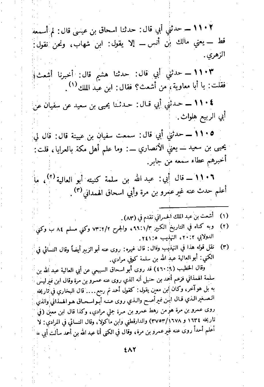 1103 - حَدثنِي أَبِي قَالَ حَدَّثَنَا هُشَيْمٌ قَالَ أخبرنَا أَشْعَث فَقلت يَا أَبَا مُعَاوِيَة من أَشْعَث فَقَالَ بن عبد الْملك