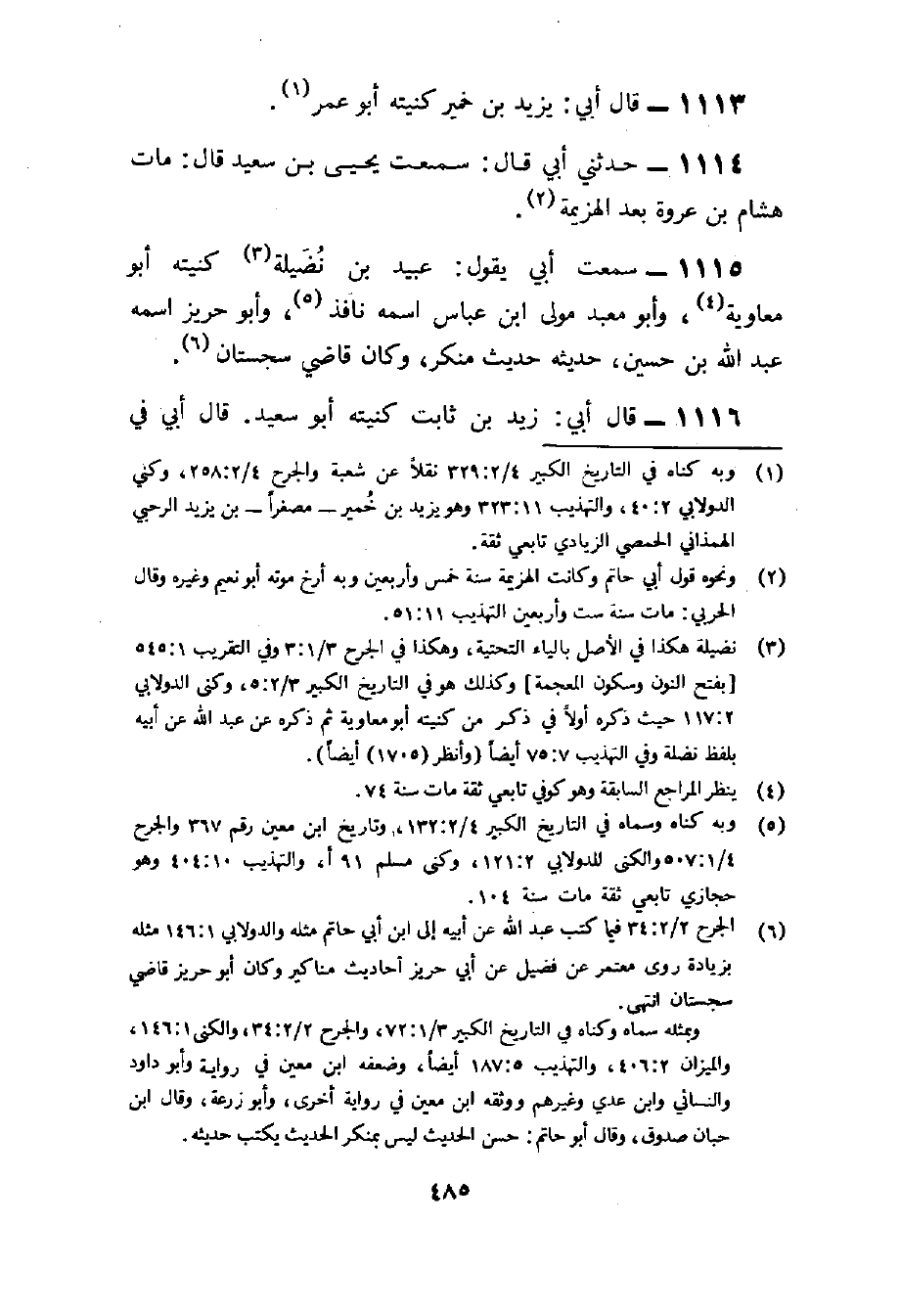 1115 - سَمِعت أبي يَقُول عبيد بن نضيلة كنيته أَبُو مُعَاوِيَة وَأَبُو معبد مولى بن عَبَّاس اسْمه نَافِذ وَأَبُو حريز اسْمه عبد الله بن حُسَيْن حَدِيثه حَدِيث مُنكر وَكَانَ قَاضِي سجستان