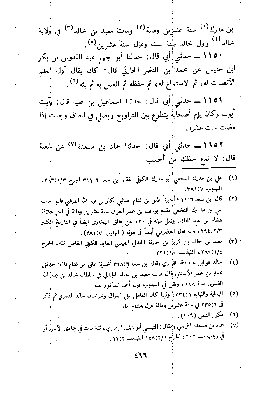 1150 - حَدثنِي أبي قَالَ حَدثنَا أَبُو الجهم عبد القدوس بن بكر بن خُنَيْس عَن مُحَمَّد بن النَّضر الْحَارِثِيّ قَالَ كَانَ يُقَال أول الْعلم الْإِنْصَات لَهُ ثمَّ الِاسْتِمَاع لَهُ ثمَّ حفظه ثمَّ الْعَمَل بِهِ ثمَّ بثه