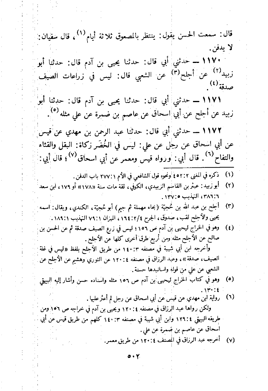 1170 - حَدثنِي أبي قَالَ حَدثنَا يحيى بن آدم قَالَ حَدثنَا أَبُو زبيد عَن أجلح عَن الشّعبِيّ قَالَ لَيْسَ فِي زراعات الصَّيف صَدَقَة