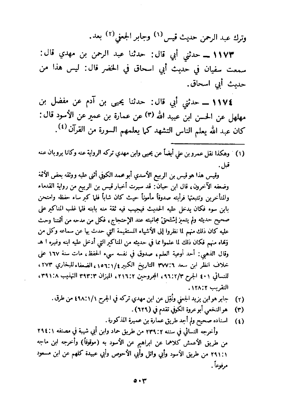 1173 - حَدثنِي أبي قَالَ حَدثنَا عبد الرَّحْمَن بن مهْدي قَالَ سَمِعت سُفْيَان فِي حَدِيث أبي إِسْحَاق فِي الْخضر قَالَ لَيْسَ هَذَا من حَدِيث أبي إِسْحَاق
