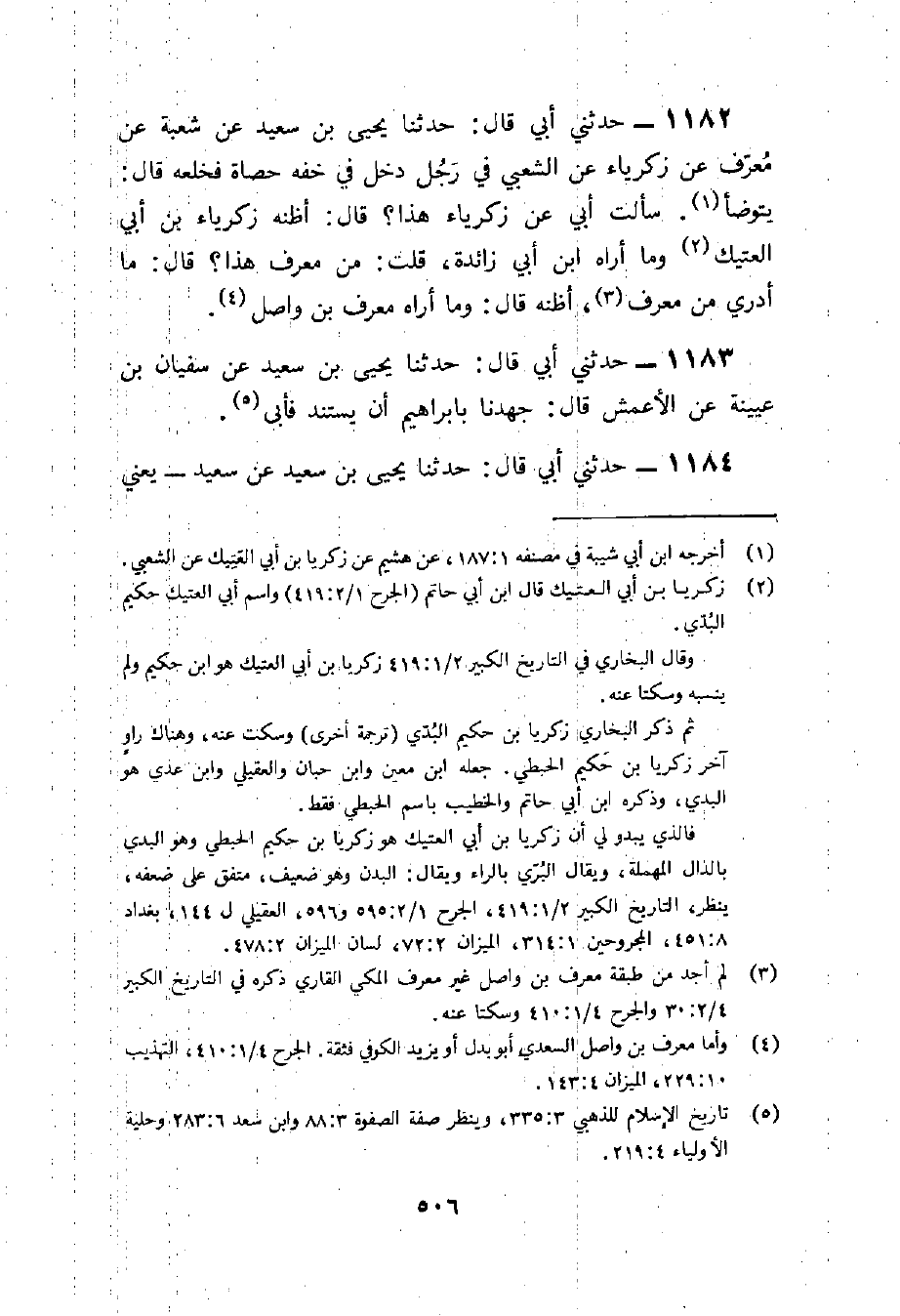 1182 - حَدثنِي أبي قَالَ حَدثنَا يحيى بن سعيد عَن شُعْبَة عَن معرف عَن زَكَرِيَّا عَن الشّعبِيّ فِي رجل دخل فِي خفه حَصَاة فخلعه قَالَ يتَوَضَّأ سَأَلت أبي عَن زَكَرِيَّا هَذَا قَالَ أَظُنهُ زَكَرِيَّا بن أبي العتيك وَمَا أرَاهُ بن أبي زَائِدَة قلت من معرف هَذَا قَالَ مَا أَدْرِي من معرف أَظُنهُ قَالَ وَمَا أرَاهُ معرف بن وَاصل