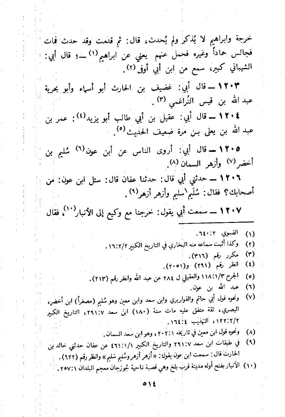 1205 - قَالَ أبي أروى النَّاس عَن بن عون سليم بن أَخْضَر وأزهر السمان