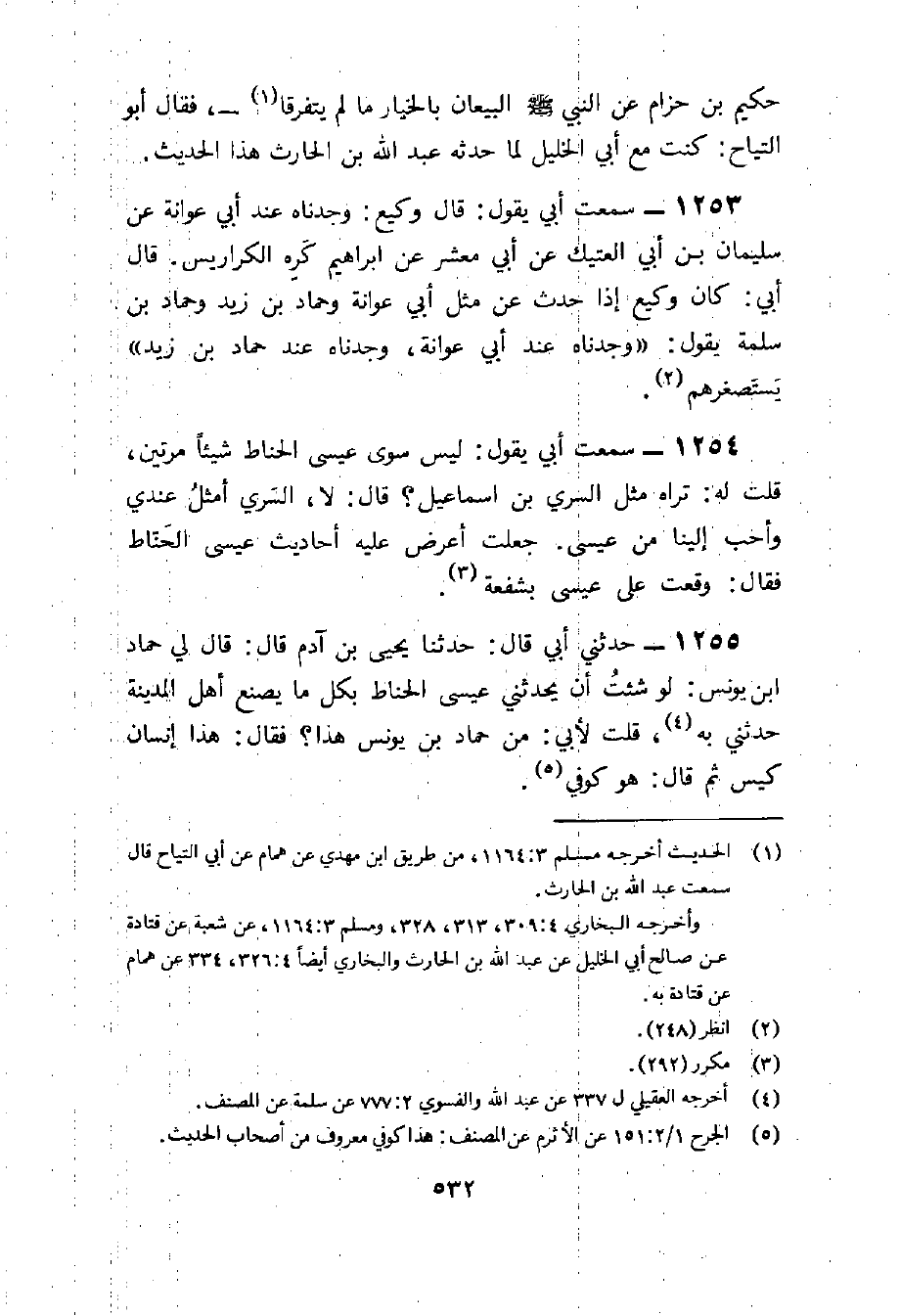 1254 - سَمِعت أبي يَقُول لَيْسَ سوى عِيسَى الحناط شَيْئا مرَّتَيْنِ قلت لَهُ ترَاهُ مثل السّري بن إِسْمَاعِيل قَالَ لَا السّري أمثل عِنْدِي وَأحب إِلَيْنَا من عِيسَى جعلت أعرض عَلَيْهِ أَحَادِيث عِيسَى الحناط فَقَالَ وَقعت على عِيسَى بشفعة