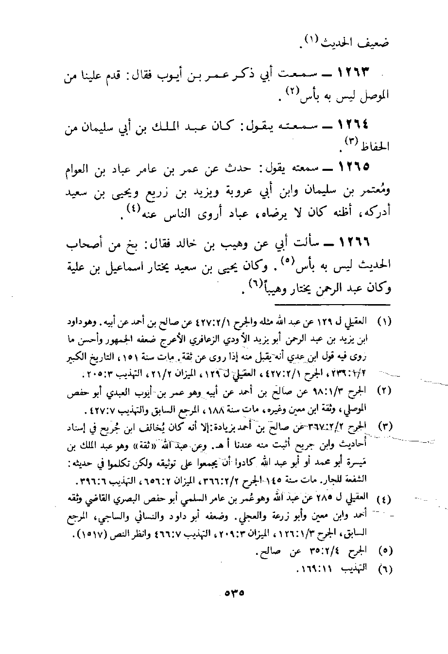 1265 - سمعته يَقُول حدث عَن عمر بن عَامر عباد بن الْعَوام ومعتمر بن سُلَيْمَان وَابْن أبي عرُوبَة وزييد بن زُرَيْع ويحى بن سعيد أدْركهُ أَظُنهُ كَانَ لَا يرضاه عباد أروى النَّاس عَنهُ