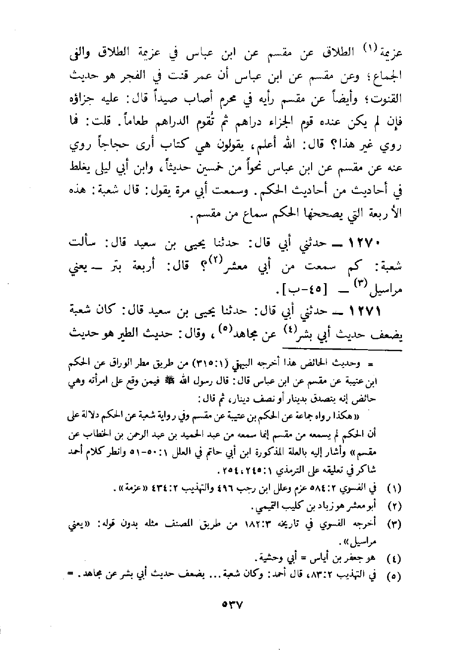 1270 - حَدثنِي أبي قَالَ حَدثنَا يحيى بن سعيد قَالَ سَأَلت شُعْبَة كم سَمِعت من أبي معشر قَالَ أَرْبَعَة بتر يَعْنِي مَرَاسِيل
