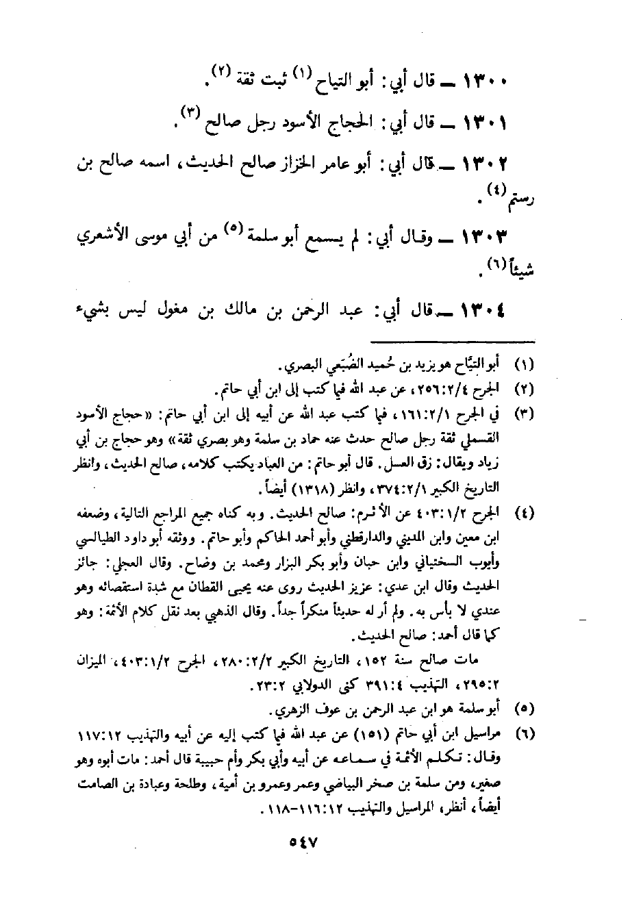 1304 - قَالَ أبي عبد الرَّحْمَن بن مَالك بن مغول لَيْسَ بِشَيْء خرقنا حَدِيثه مُنْذُ دهر من الدَّهْر أحفظ عَنهُ حديثين أَو ثَلَاثَة وَقد كتبت عَن أبي عَنهُ حَدِيث أبي حُصَيْن شيعنا الْأسود قَالَ أَبُو عبد الرَّحْمَن سمعته من أبي فِي المذاكرة