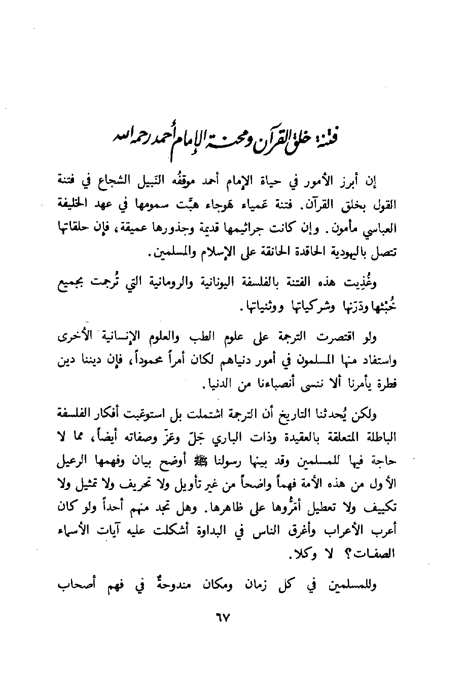 فتنة خلق القرآن ومحنة الامام أحمد رحمه الله إن أبرز الامور في حياة الامام أحمد موقفه النبيل الشجاع في فتنة القول بخلق القرآن.