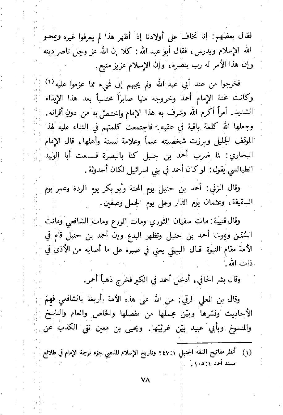 (1) أنظر مفاتيح الفقه الحنبلي 1: 247 وتاريخ الاسلام للذهبي جزء ترجمة الامام في طلائع مسند أحمد 1: 105.