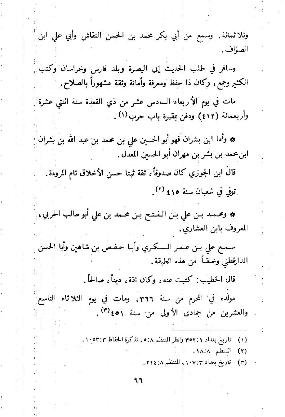 (3) تاريخ بغداد 3: 107، المنتظم 8: 214.