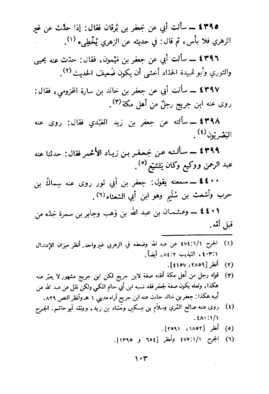 4398 - سَأَلته عَن جَعْفَر بن زيد الْعَبْدي فَقَالَ روى عَنهُ البصريون
