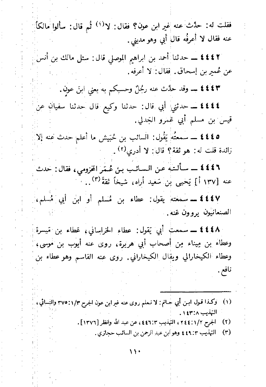 4445 - سمعته يَقُول السَّائِب بن حُبَيْش مَا أعلم حدث عَنهُ إِلَّا زَائِدَة قلت لَهُ هُوَ ثِقَة قَالَ لَا أَدْرِي