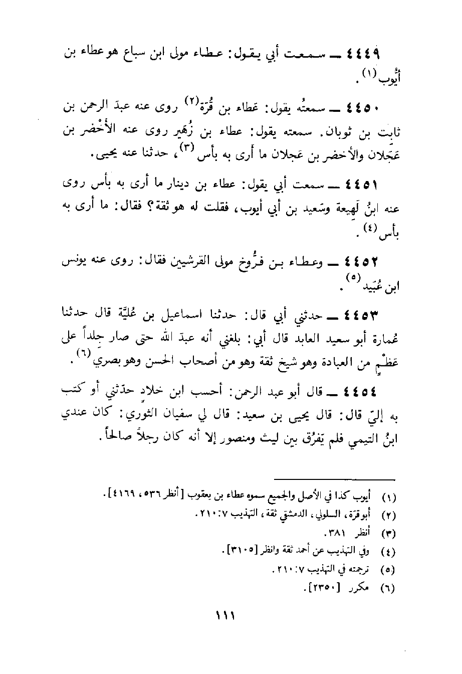 4450 - سمعته يَقُول عَطاء بن قُرَّة روى عَنهُ عبد الرَّحْمَن بن ثَابت بن ثَوْبَان سمعته يَقُول عَطاء بن زُهَيْر روى عَنهُ الْأَخْضَر بن عجلَان والأخضر بن عجلَان مَا أرى بِهِ بَأْس حَدثنَا عَنهُ يحيى