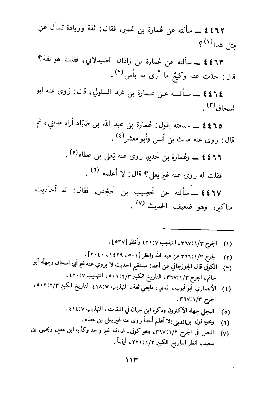 4466 - وَعمارَة بن حَدِيد روى عَنهُ يعلي بن عَطاء فَقلت لَهُ روى عَنهُ غير يعلي قَالَ لَا أعلمهُ