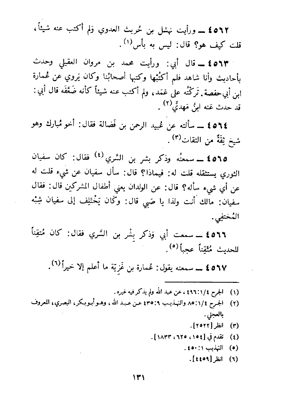 4562 - وَرَأَيْت نهشل بن حُرَيْث الْعَدوي وَلم أكتب عَنهُ شَيْئا قلت كَيفَ هُوَ قَالَ لَيْسَ بِهِ بَأْس
