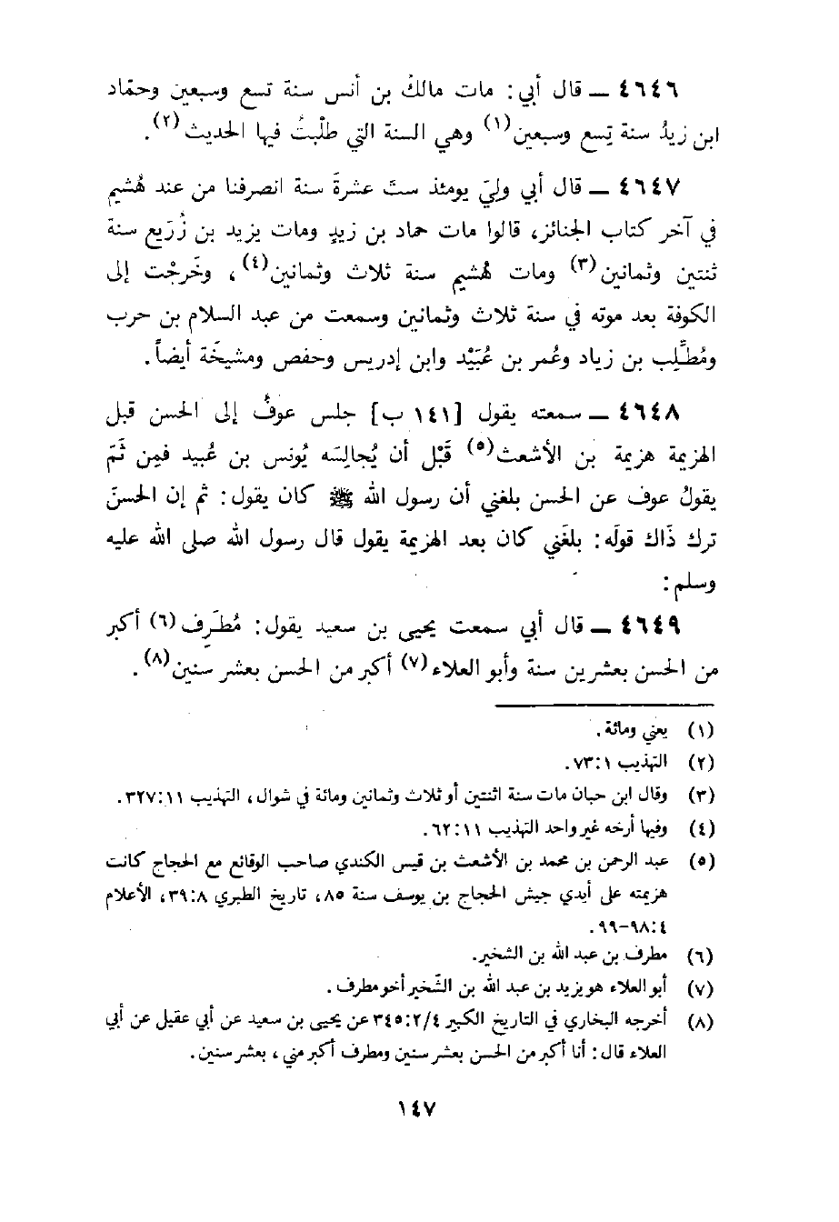 4649 - قَالَ أبي سَمِعت يحيى بن سعيد يَقُول مطرف أكبر من الْحسن بِعشْرين سنة وَأَبُو الْعَلَاء أكبر من الْحسن بِعشر سِنِين