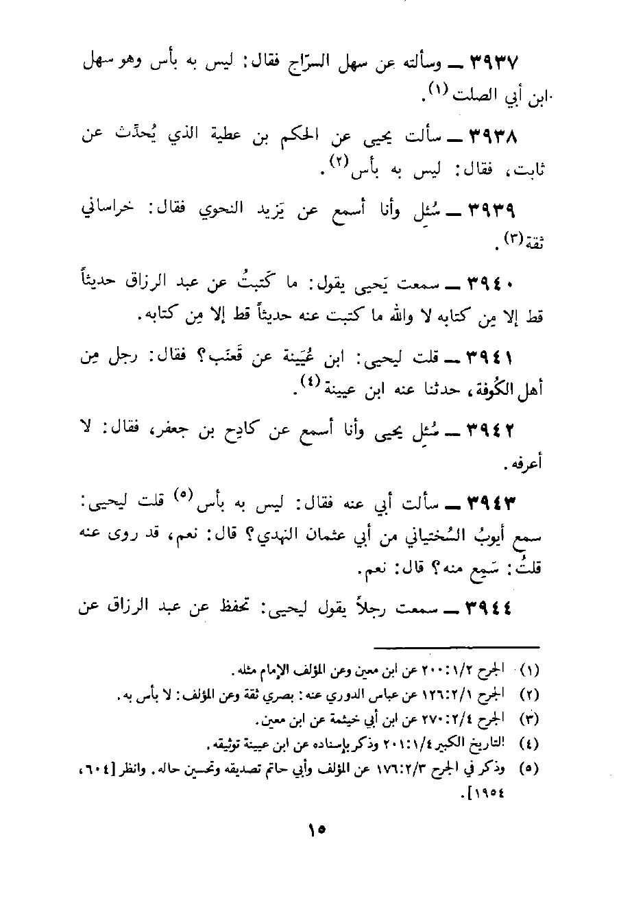3940 - سَمِعت يحيى يَقُول مَا كتبت عَن عبد الرَّزَّاق حَدِيثا قطّ إِلَّا من كِتَابه لَا وَالله مَا كتبت عَنهُ حَدِيثا قطّ إِلَّا من كِتَابه