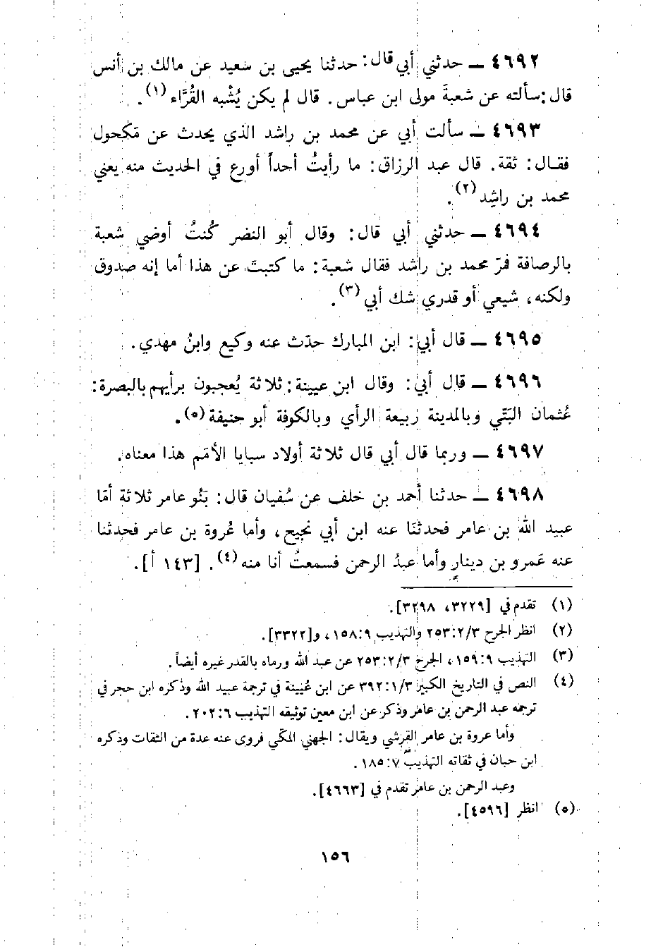 4692 - حَدثنِي أبي قَالَ حَدثنَا يحيى بن سعيد عَن مَالك بن أنس قَالَ سَأَلته عَن شُعْبَة مولى بن عَبَّاس قَالَ لم يكن يشبه الْقُرَّاء