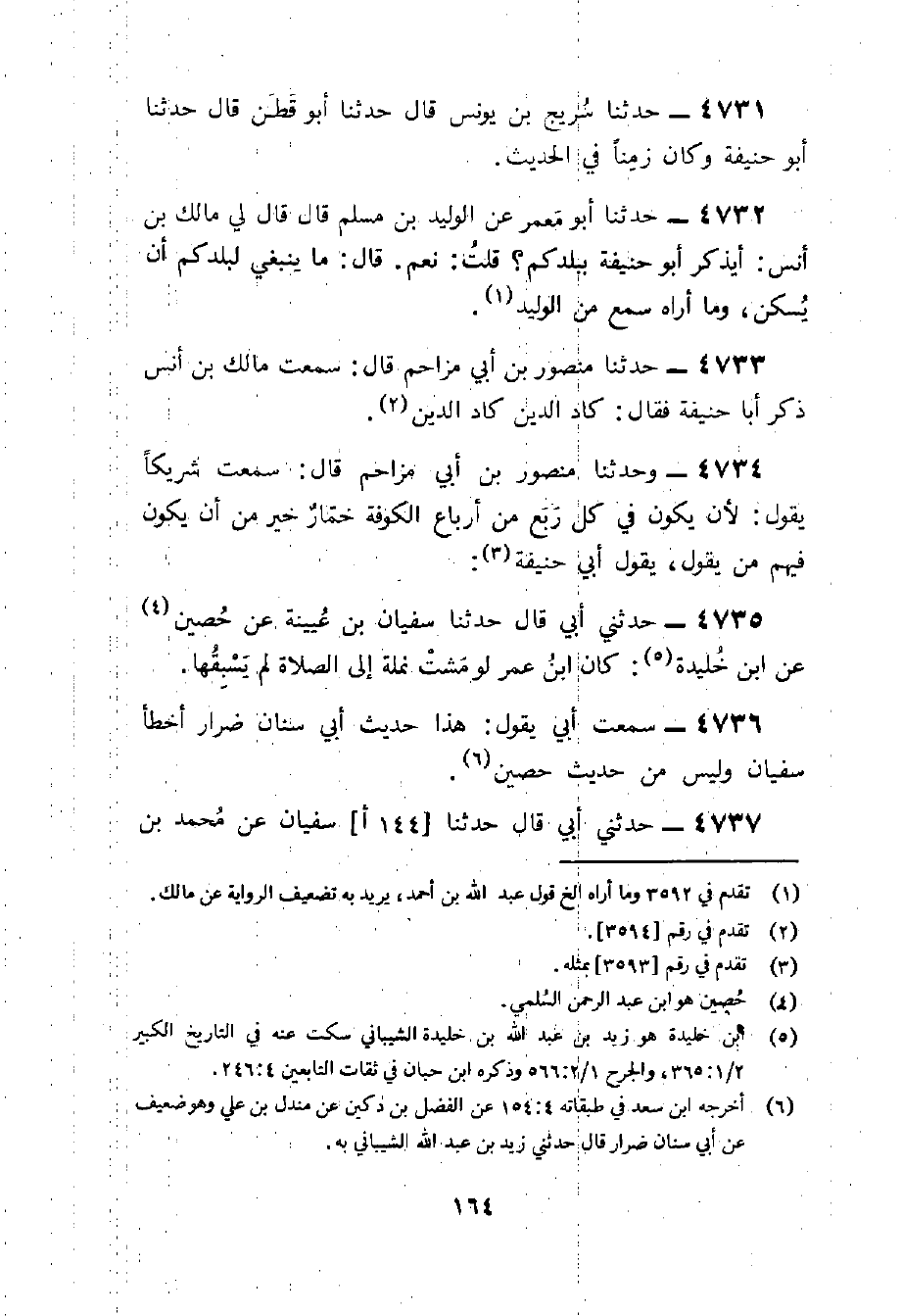 4731 - حَدثنَا سُرَيج بن يُونُس قَالَ حَدَّثَنَا أَبُو قَطَنٍ قَالَ حَدَّثَنَا أَبُو حنيفَة وَكَانَ زَمنا فِي الحَدِيث