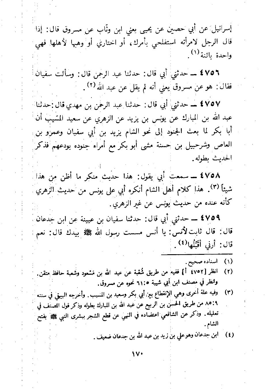 4756 - حَدثنِي أبي قَالَ حَدثنَا عبد الرَّحْمَن قَالَ وَسَأَلت سُفْيَان فَقَالَ هُوَ عَن مَسْرُوق يَعْنِي أَنه لم يقل عَن عبد الله