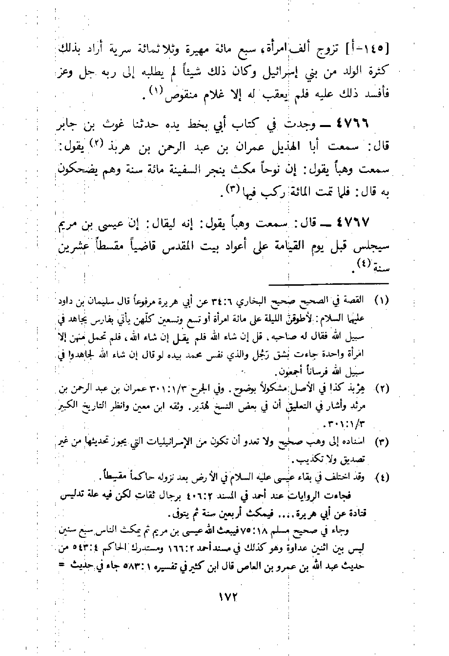 4767 - قَالَ سَمِعت وهبا يَقُول إِنَّه ليقال إِن عِيسَى بن مَرْيَم سيجلس قبل يَوْم الْقِيَامَة على أَعْوَاد بَيت الْمُقَدّس قَاضِيا مقسطا عشْرين سنة