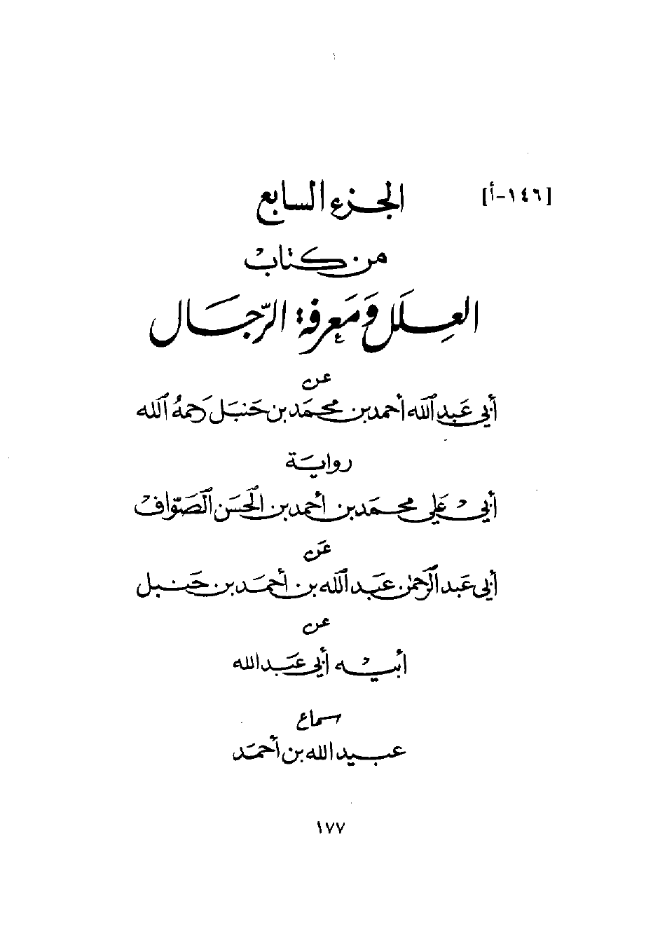 الْجُزْء السَّابِع من كتاب الْعِلَل وَمَعْرِفَة الرِّجَال
