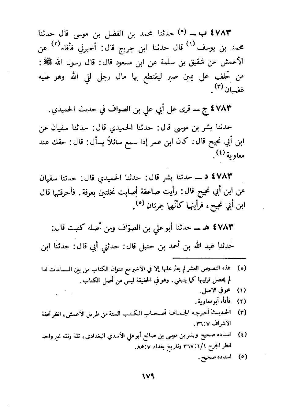 4783 - قرى على أبي عَليّ بن الصَّواف فِي حَدِيث الْحميدِي حَدثنَا بشر بن مُوسَى قَالَ حَدثنَا الْحميدِي قَالَ حَدثنَا سُفْيَان عَن بن أبي نجيح قَالَ كَانَ بن عمر إِذا سمع سَائِلًا يسْأَل قَالَ حَقك عِنْد مُعَاوِيَة