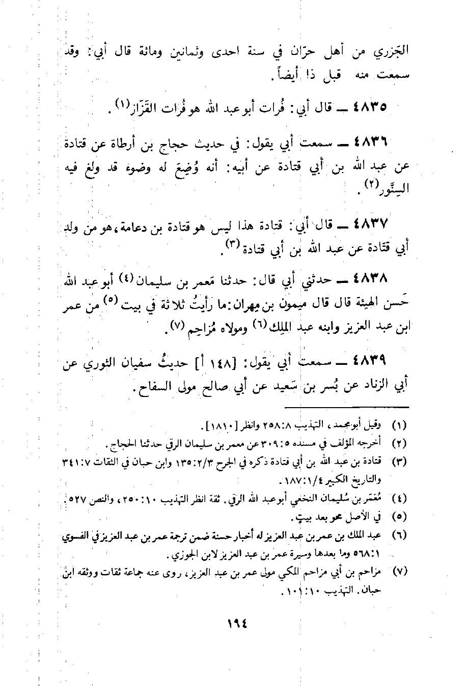 4838 - حَدثنِي أبي قَالَ حَدثنَا معمر بن سُلَيْمَان أَبُو عبد الله حسن الْهَيْئَة قَالَ قَالَ مَيْمُون بن مهْرَان مَا رَأَيْت ثَلَاثَة فِي بَيت من عمر بن عبد الْعَزِيز وَابْنه عبد الْملك ومولاه مُزَاحم