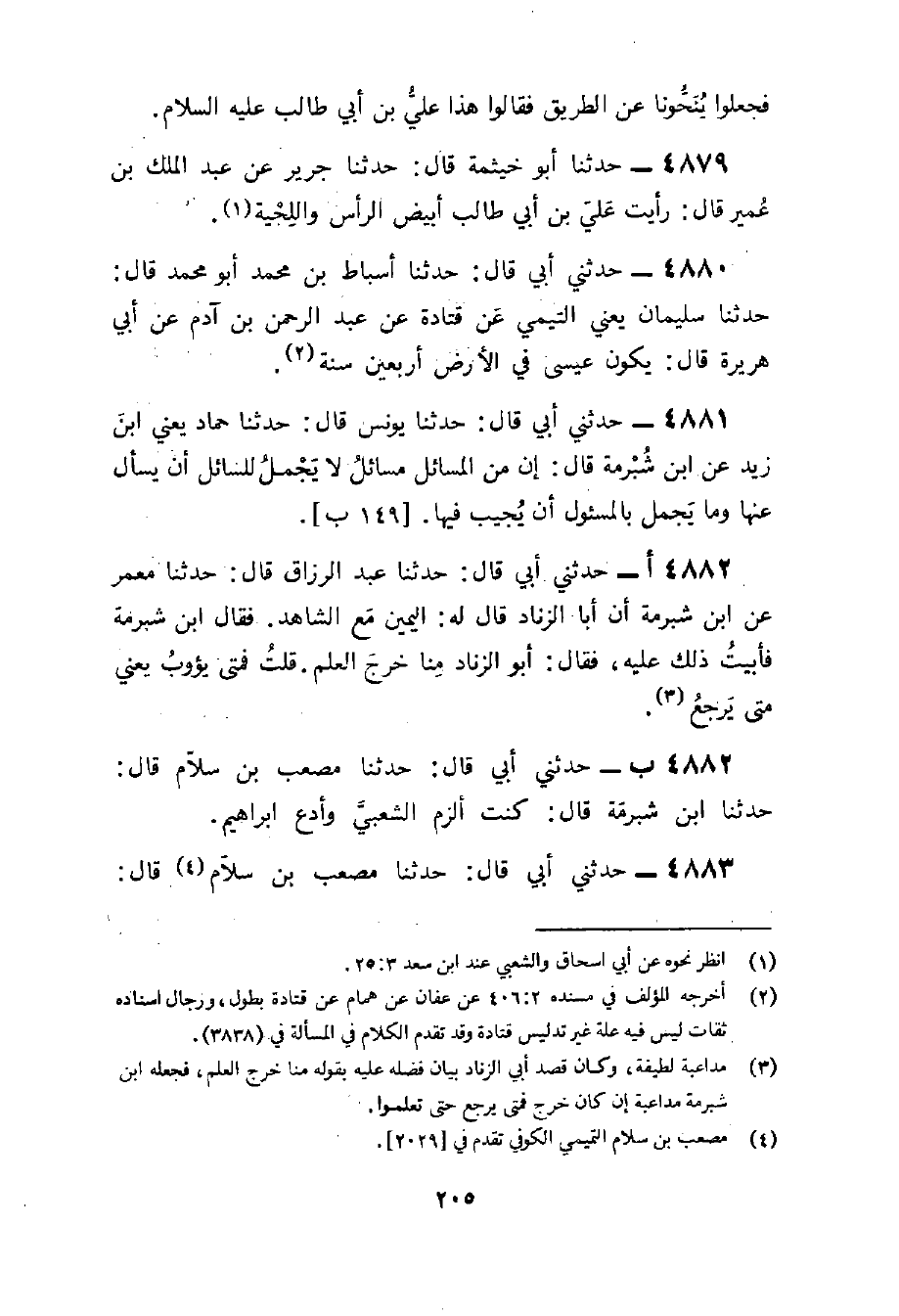 4882 - حَدثنِي أبي قَالَ حَدَّثَنَا مُصعب بْن سَلام قَالَ حَدثنَا بن شبْرمَة قَالَ كنت ألزم الشّعبِيّ وأدع إِبْرَاهِيم