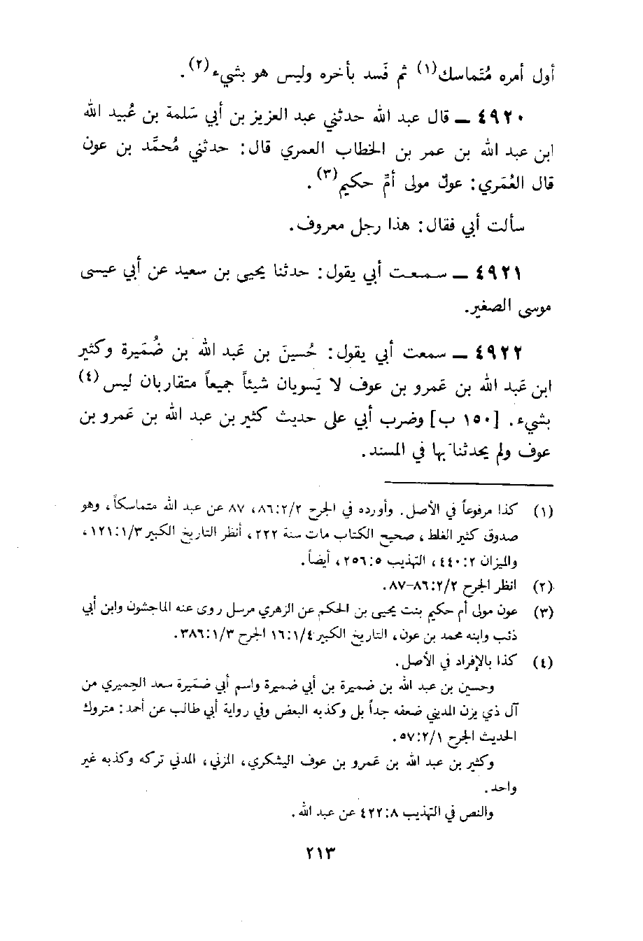 4920 - قَالَ عبد الله حَدثنِي عبد الْعَزِيز بن أبي سَلمَة بن عُبَيْدِ اللَّهِ بْنِ عَبْدِ اللَّهِ بن عمر بن الْخطاب الْعمريّ قَالَ حَدثنِي مُحَمَّد بن عون قَالَ الْعمريّ عون مولي أم حَكِيم سَأَلت أبي فَقَالَ هَذَا رجل مَعْرُوف