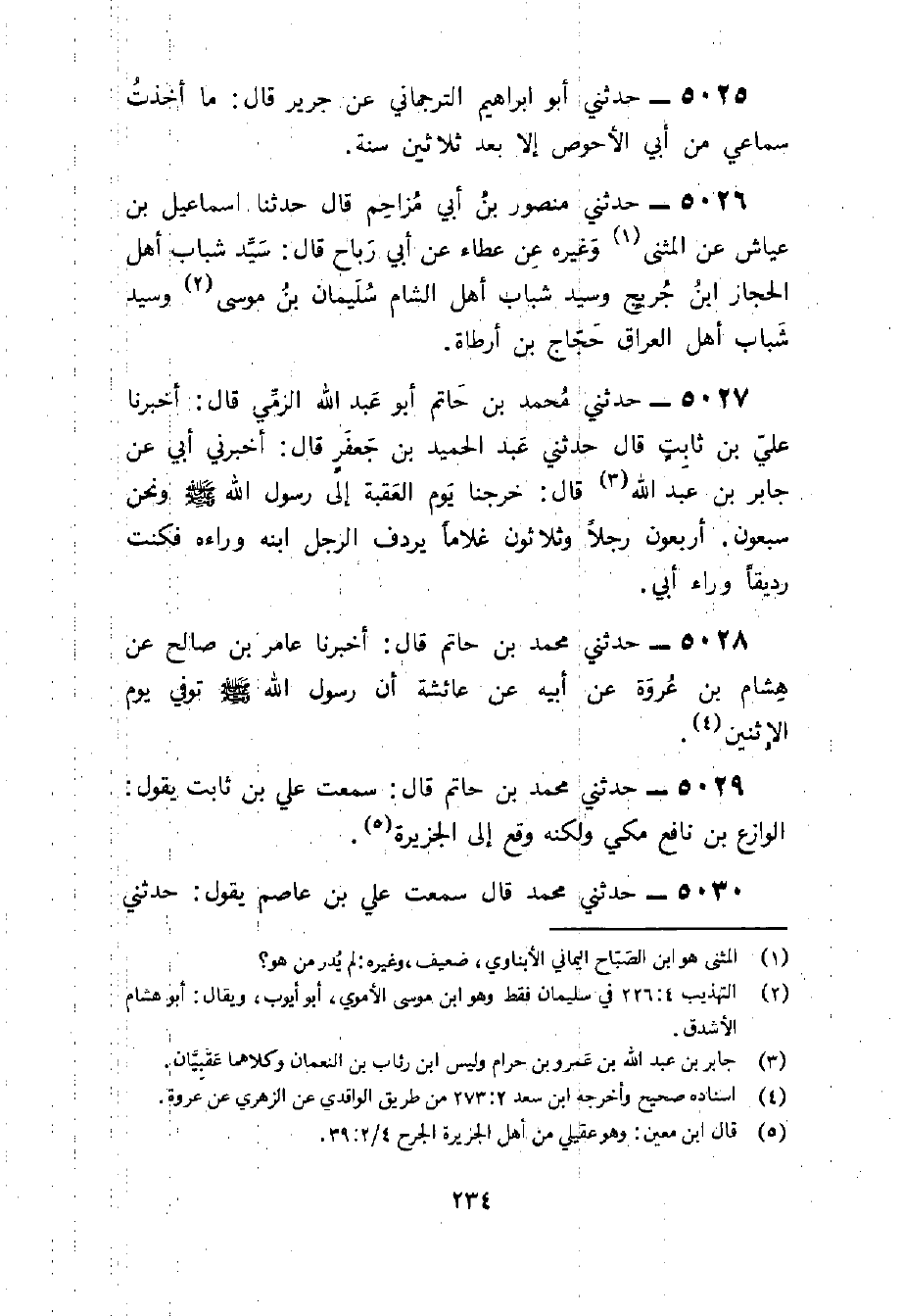 5025 - حَدثنِي أَبُو إِبْرَاهِيم الترجماني عَن جرير قَالَ مَا أخذت سَمَاعي من أبي الْأَحْوَص إِلَّا بعد ثَلَاثِينَ سنة