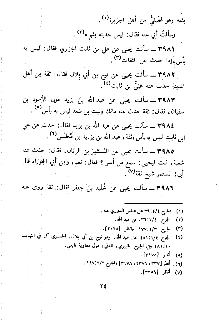 3986 - سَأَلت يحيى عَن خُلَيْد بن جَعْفَر فَقَالَ ثِقَة روى عَنهُ شُعْبَة
