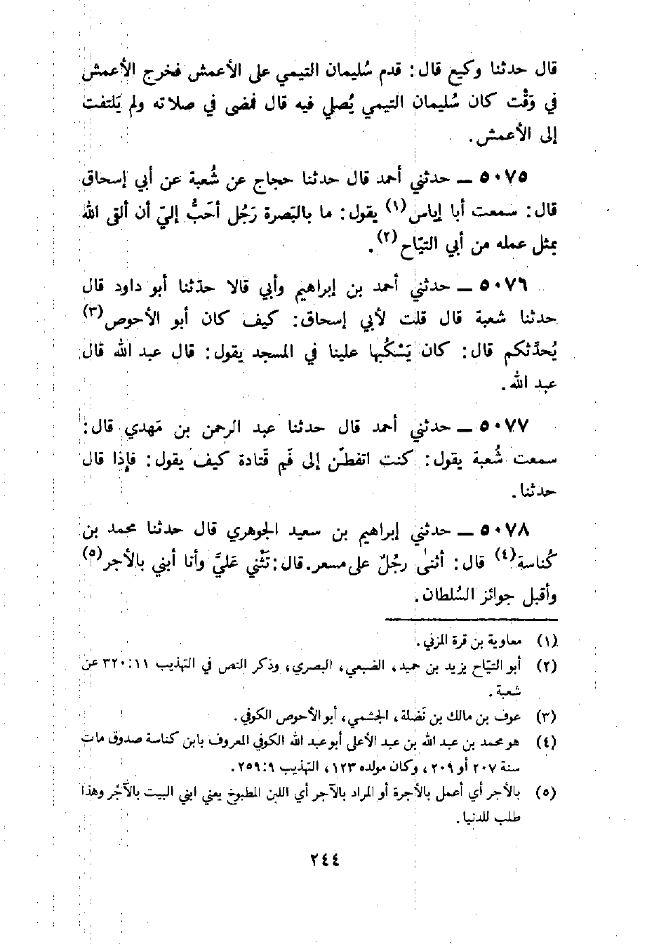 5078 - حَدثنِي إِبْرَاهِيم بن سعيد الْجَوْهَرِي قَالَ حَدثنَا مُحَمَّد بن كناسَة قَالَ أثنى رجل على مسعر قَالَ تثني عَليّ وَأَنا أبني بِالْأَجْرِ وَأَقْبل جوائز السُّلْطَان