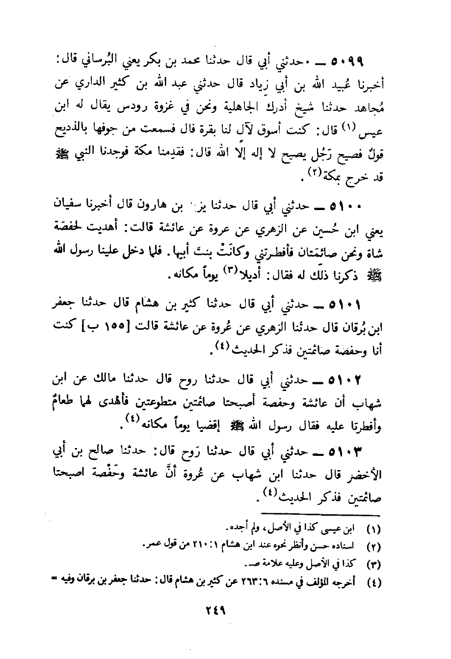 5102 - حَدَّثَنِي أَبِي قَالَ حَدَّثَنَا رَوْحٌ قَالَ حَدَّثَنَا مَالك عَن بن شِهَابٍ أَنَّ عَائِشَةَ وَحَفْصَةَ أَصْبَحَتَا صَائِمَتَيْنِ مُتَطَوِّعَتَيْنِ فَأُهْدِيَ لَهُمَا طَعَامٌ وأفطرتا عَلَيْهِ فَقَالَ رَسُولُ اللَّهِ صَلَّى اللَّهُ عَلَيْهِ وَسَلَّمَ اقْضِيَا يَوْمًا مَكَانَهُ