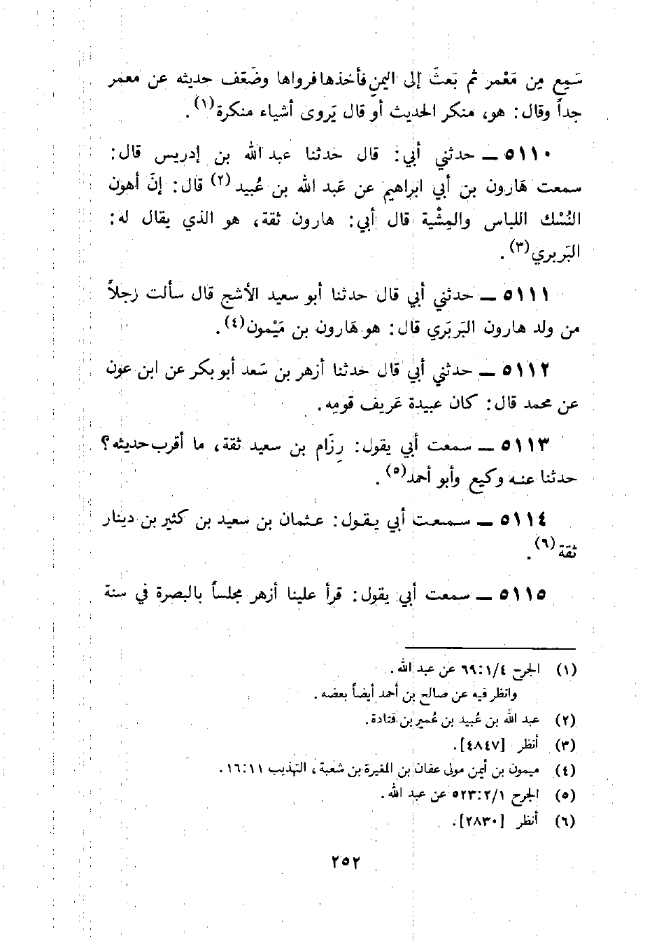5115 - سَمِعت أبي يَقُول قَرَأَ علينا أَزْهَر مَجْلِسا بِالْبَصْرَةِ فِي سنة سِتّ وَثَمَانِينَ فِيهِ نَحْو من سبعين حَدِيثا قَالَ فِيهَا كلهَا أخبرنَا بن عون أخبرنَا بن عون قَالَ ثمَّ لم أسمعهُ بعد ذَلِك يذكر الْأَخْبَار