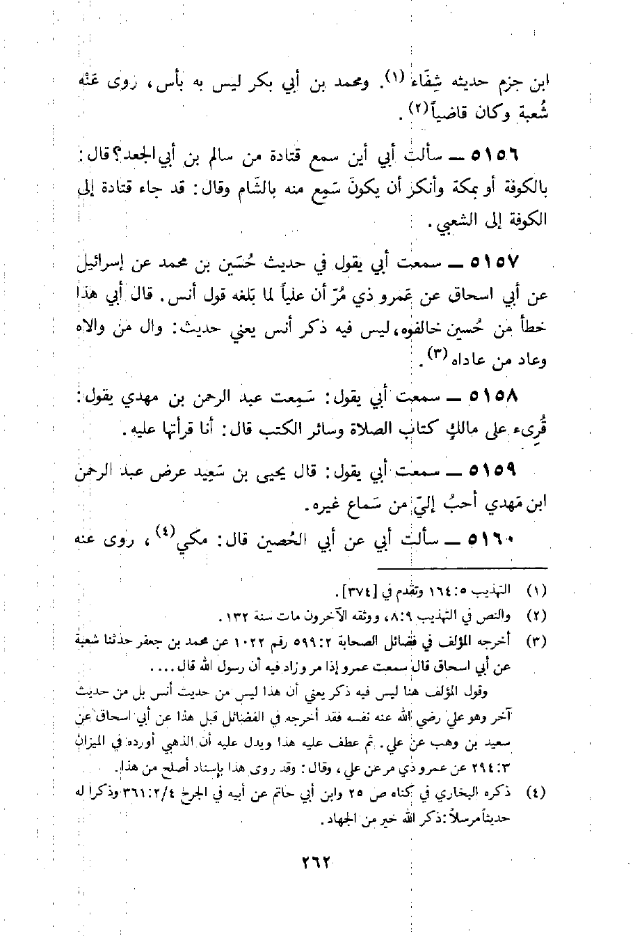 5158 - سَمِعت أبي يَقُول سَمِعت عبد الرَّحْمَن بن مهْدي يَقُول قرئَ على مَالك كتاب الصَّلَاة وَسَائِر الْكتب قَالَ أَنا قرأتها عَلَيْهِ
