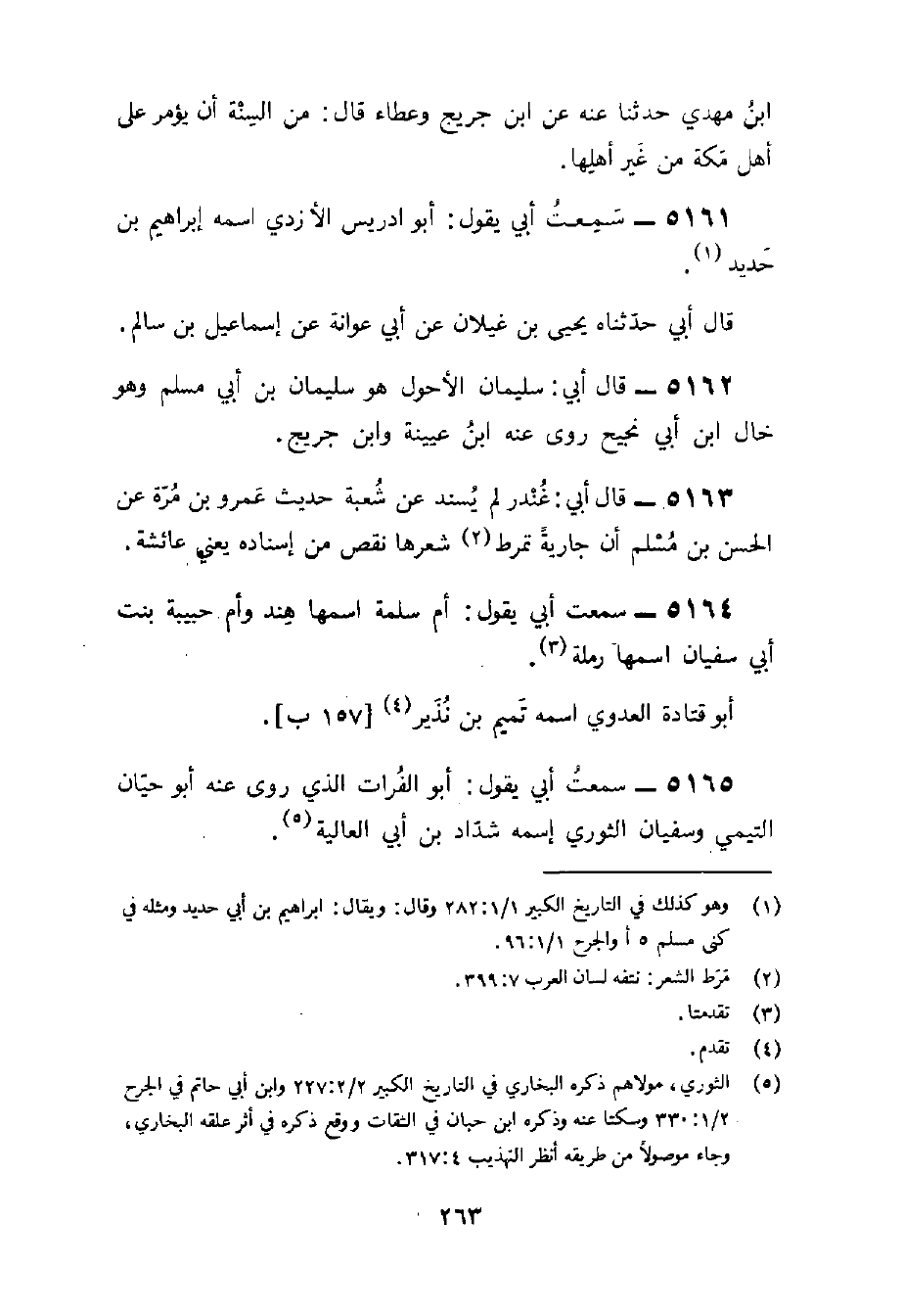 5164 - سَمِعت أبي يَقُول أم سَلمَة اسْمهَا هِنْد وَأم حَبِيبَة بنت أبي سُفْيَان اسْمهَا رَملَة أَبُو قَتَادَة الْعَدوي اسْمه تَمِيم بن نَذِير
