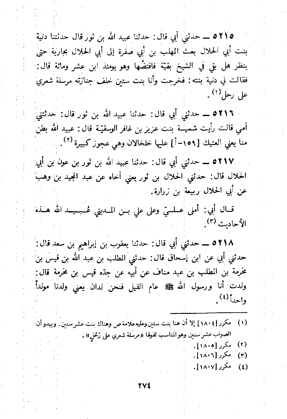5217 - حَدثنِي أبي قَالَ حَدثنَا عبيد الله بن ثَوْر بن عون بن أبي الْحَلَال قَالَ حَدثنِي الْحَلَال بن ثَوْر يَعْنِي أَخَاهُ عَن عبد الْمجِيد بن وهب عَن أبي الْحَلَال ربيعَة بن زُرَارَة قَالَ أبي أملي عَليّ وعَلى عَليّ بن الْمَدِينِيّ عبيد الله هَذِه الْأَحَادِيث