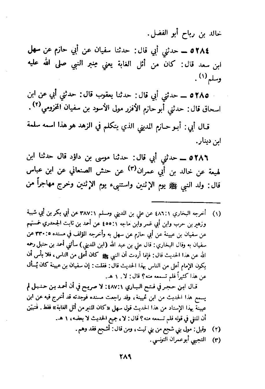 5285 - حَدَّثَنِي أَبِي قَالَ حَدَّثَنَا يَعْقُوبُ قَالَ حَدثنِي أبي عَن بن إِسْحَاق قَالَ حَدَّثَنِي أَبُو حَازِم الأفزر مَوْلَى الْأسود بْن سُفْيَان المَخْزُومِي قَالَ أَبِي أَبُو حَازِم الْمَدِينِيّ الَّذِي يتَكَلَّم فِي الزّهْد هُوَ هَذَا اسْمه سَلمَة بْن دِينَار
